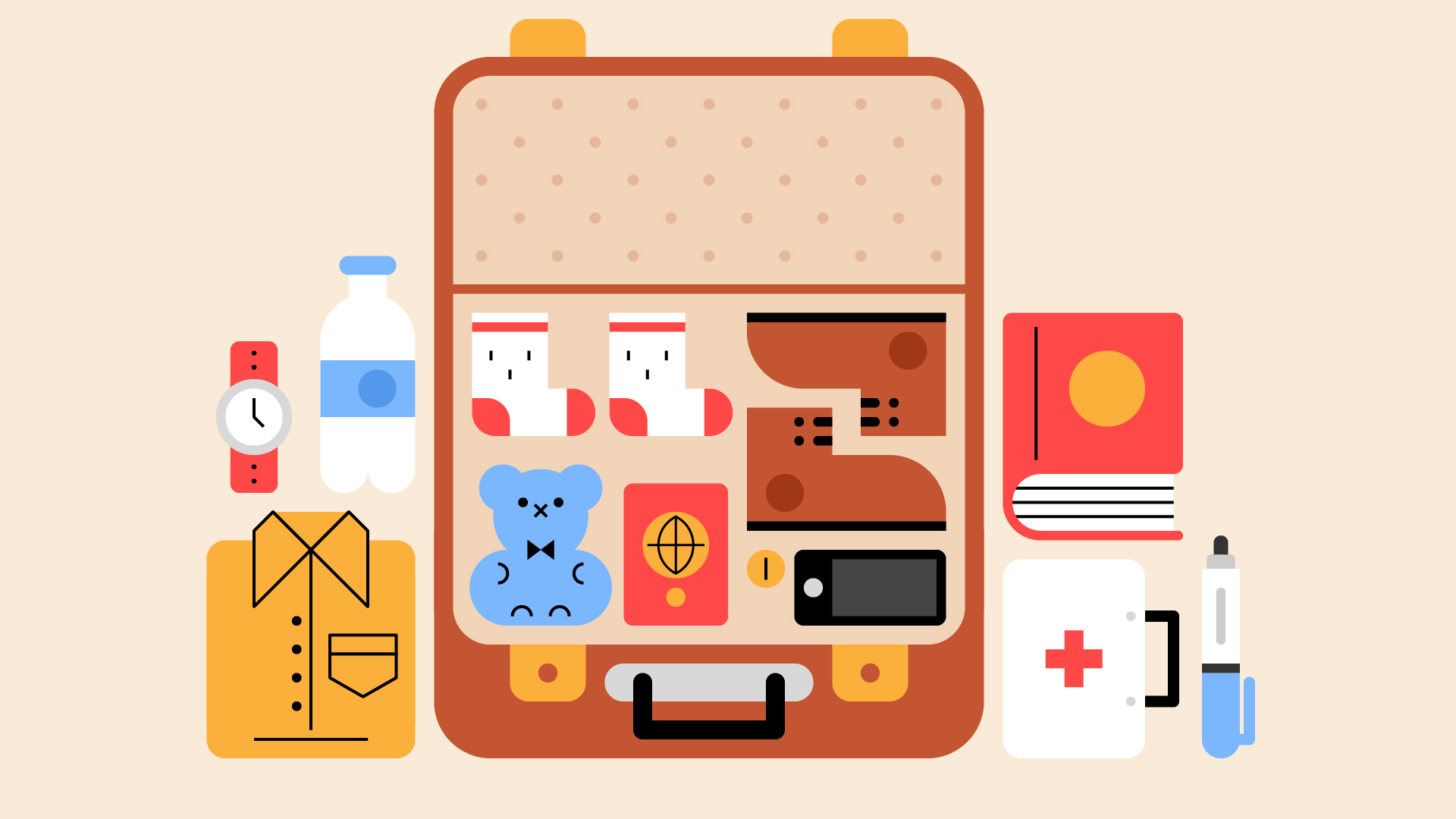 - Give everyone a piece of paper and a pen. They should draw a suitcase on their paper, with enough space for five items.